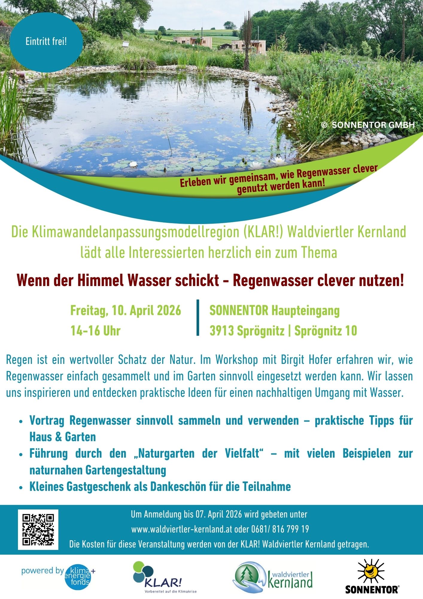 Der Vortrag findet am Freitag, den 10. April 2026 von 14 – 16 Uhr beim Sonnentor in Sprögnitz 10 statt.