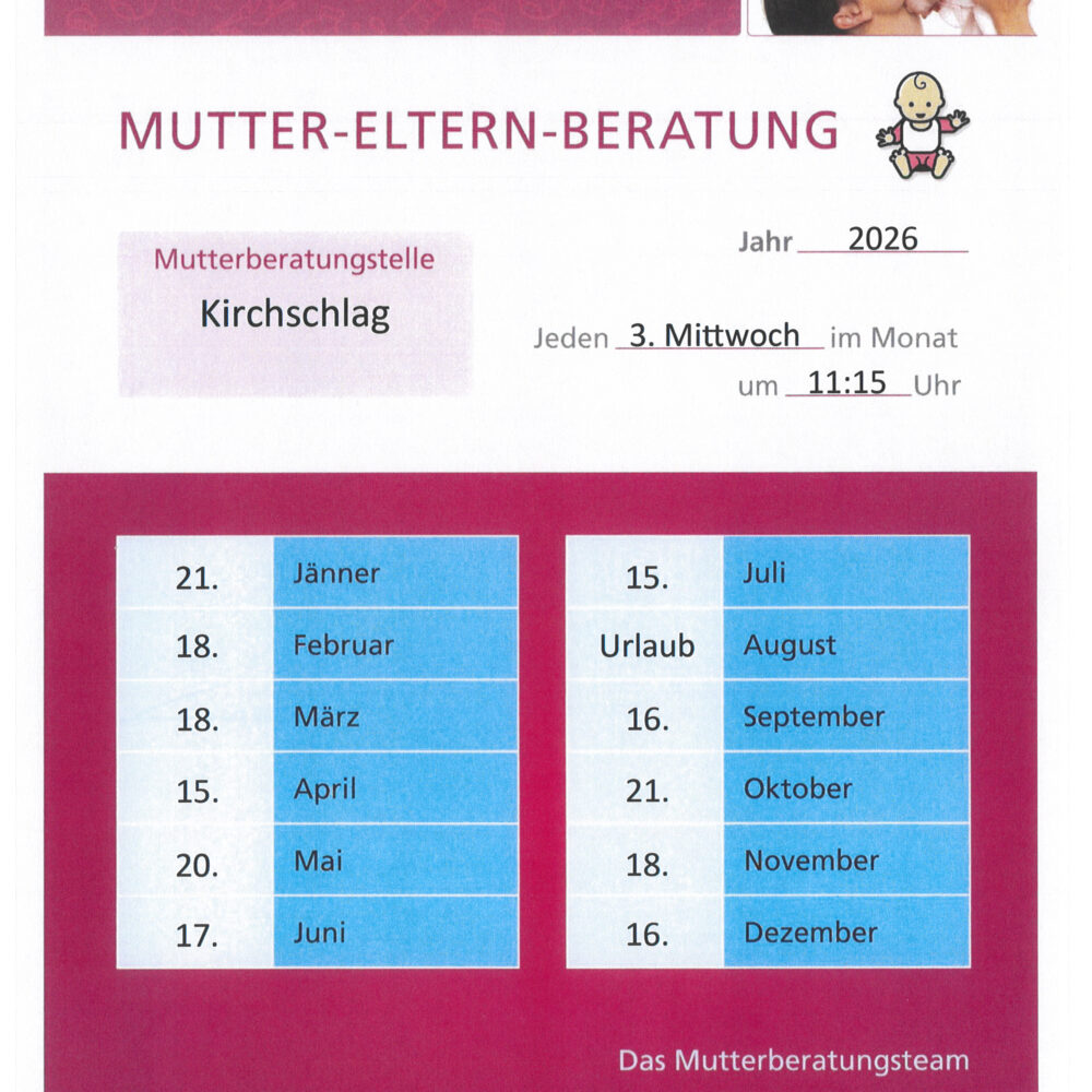 Mutterberatungsstelle KIRCHSCHLAG Jeden 3. Mittwoch im Monat um 11:15 Uhr …