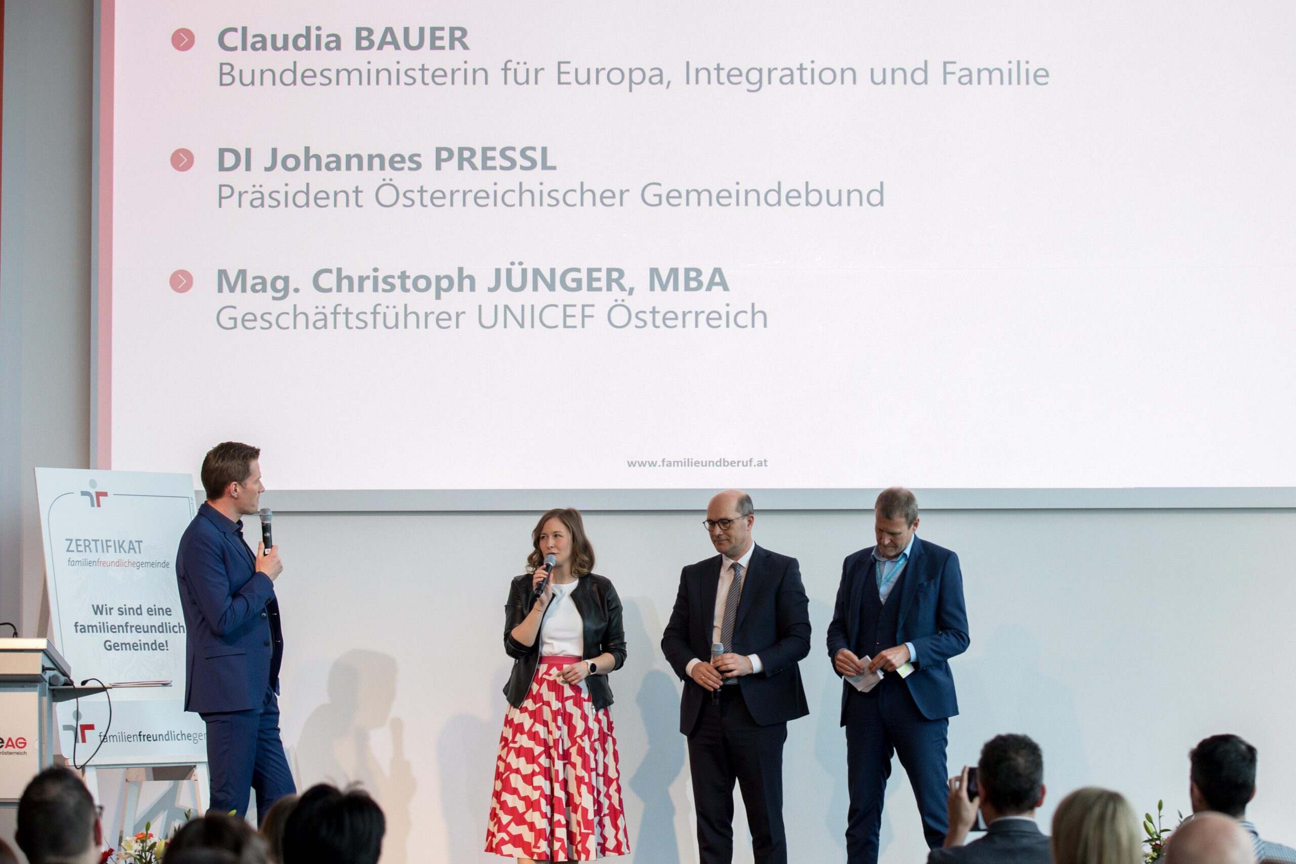 Im Rahmen einer feierlichen Zertifikatsverleihung in den Räumlichkeiten der Energie AG Oberösterreich in Linz wurden am 9. April 2026 zahlreiche Gemeinden und Regionen aus ganz Österreich für ihr familienfreundliches Engagement ausgezeichnet. Die Verleihung des staatlichen Gütezeichens familienfreundlichegemeinde erfolgte durch Claudia Bauer, Bundesministerin für Europa, Integration und Familie sowie den Präsidenten des Österreichischen Gemeindebundes, DI Bgm. Johannes Pressl.