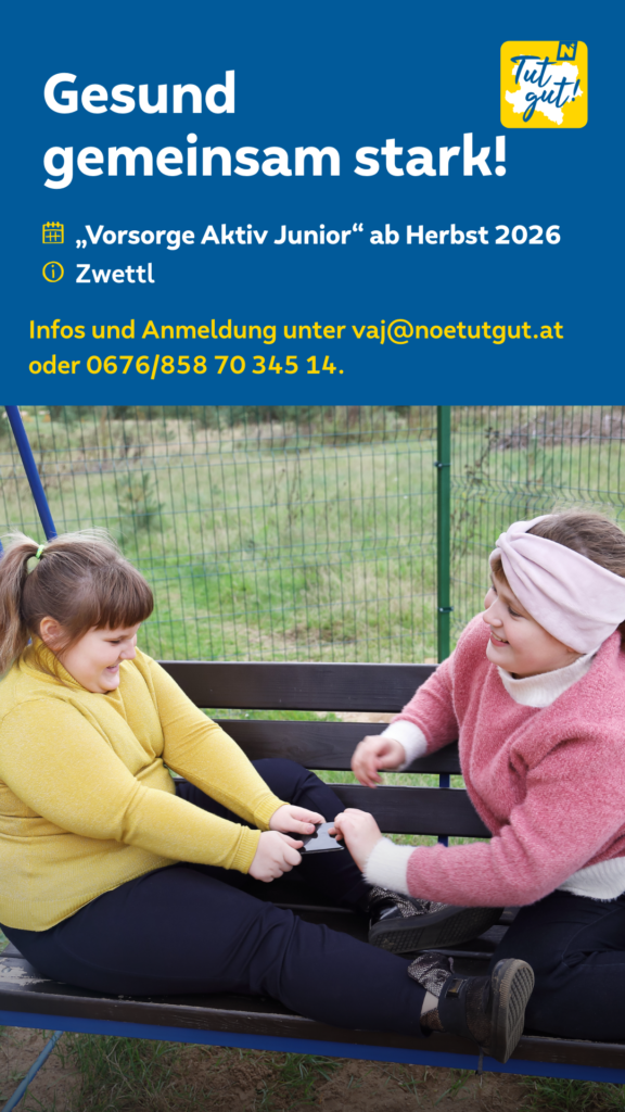 Alle Informationen, Kurzfilm und Kontakt zum Angebot Vorsorge aktiv junior sind auch unserer Homepage unter www.noetutgut.at/angebote/vorsorge-aktiv-junior