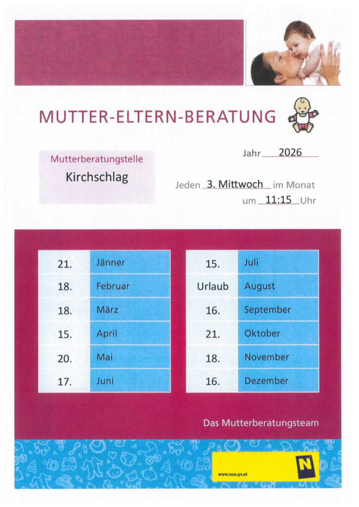 Alle Termine der Mutterberatung finden Sie auch in unserem Veranstaltungskalender.